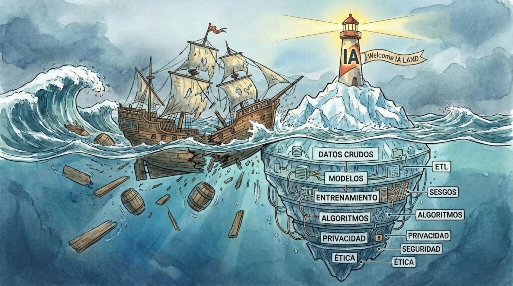 Las empresas latinoamericanas navegan a toda velocidad hacia la punta brillante, sin instrumentos para ver lo que hay debajo. La colisión no siempre es espectacular. A veces es un fracaso silencioso, un proyecto que deja de mencionarse en reuniones, un equipo de ciencia de datos que se disuelve sin ruido.